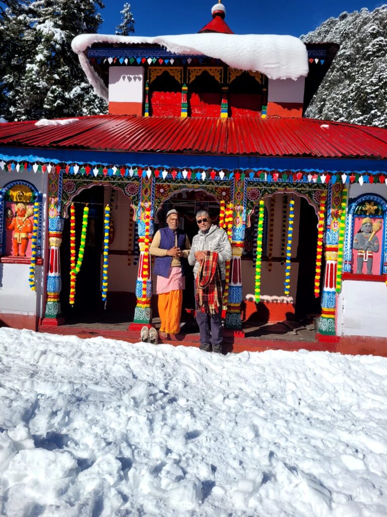 Legend says Parvati, consort of Lord Shiva, came to this lake to bathe. She entered a nearby cave and created a boy through yogic power to guard her. When Shiva arrived and was refused entry, he cut off the boy’s head in a fit of rage. Seeing Parvati’s grief, he replaced it with an elephant’s head. This is believed to be the birthplace of Ganesha. Dodhi means elephant’s trunk, tal means lake. Hence, Dodital. The temple opens only six months a year, and we were lucky to see it draped in snow.